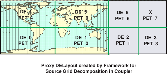 Since all data communication happens within a component, a Coupler Component must be created on the union of the PETs of all the Gridded Components that it couples.